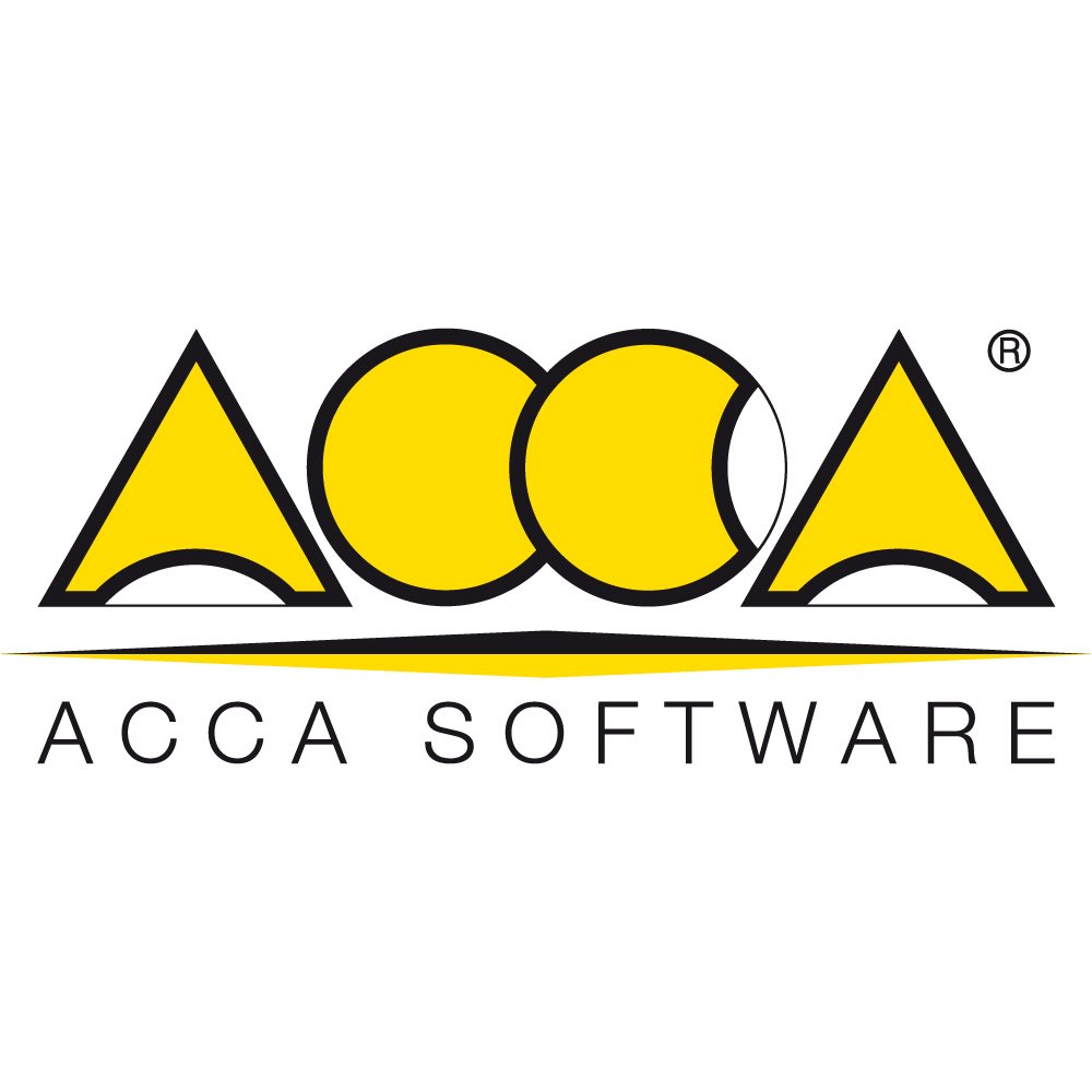 Above the logo’s graphic wordmark, a small registered trademark symbol appears to the upper right of the final triangle, confirming the protected status of the brand. This subtle detail reinforces the company’s maturity and legitimacy within the global software market. Beneath the geometric “ACCA” emblem, the words “ACCA SOFTWARE” are set in a clean, sans-serif typeface with generous spacing between the letters. The typography is simple and modern, chosen to support the more expressive geometric symbol above without competing for attention. The use of a minimalist, all-caps font amplifies readability and ensures that the brand name is immediately recognizable in a variety of sizes and formats, whether on digital interfaces, technical documents, product packaging, or trade show materials.