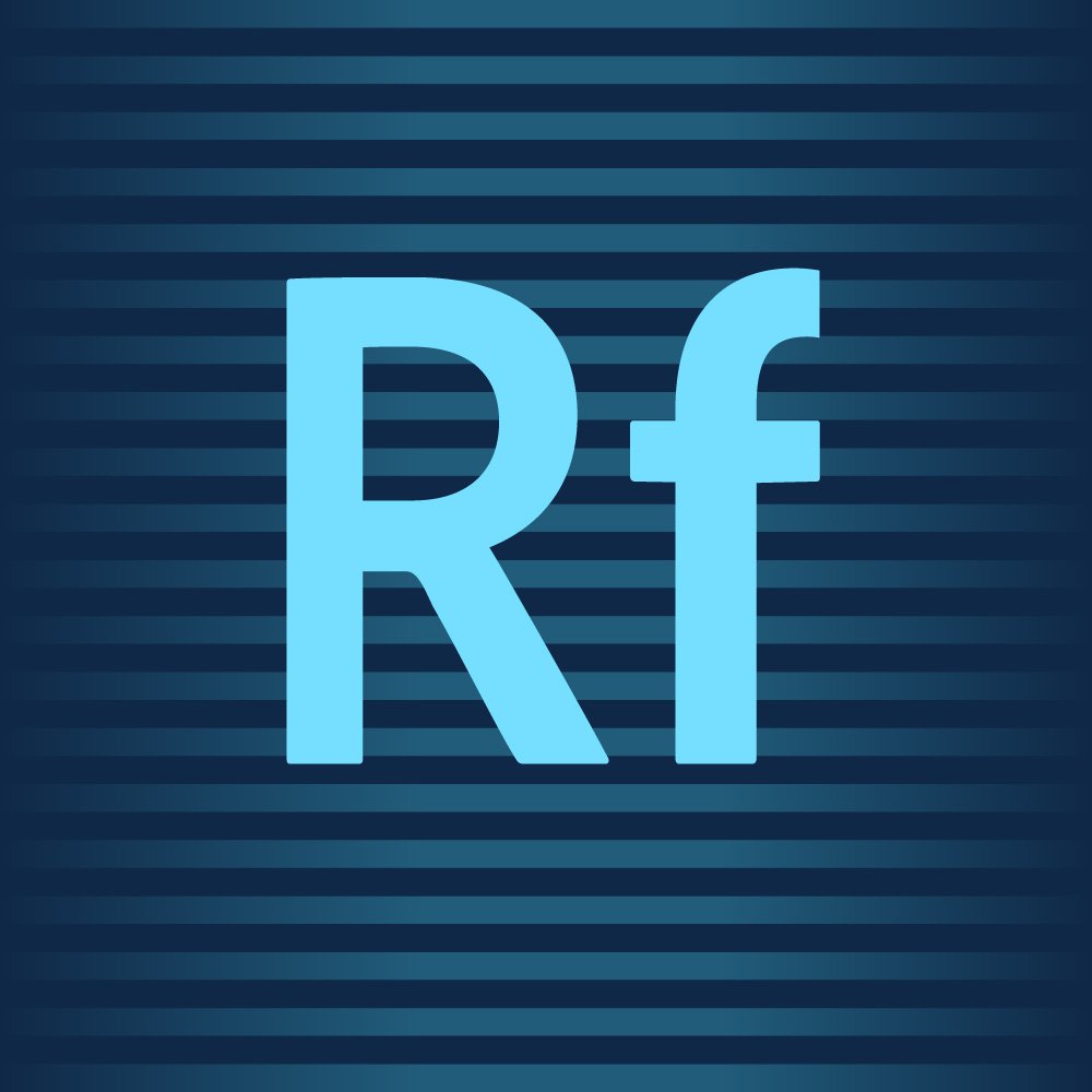 The logo shown represents Adobe Edge Reflow CC, a responsive web design tool that was part of Adobe’s broader Creative Cloud ecosystem. Consistent with Adobe’s family of product icons, the logo uses a minimalist, typography‑driven approach that emphasizes clarity, recognizability, and functional association with digital design. At the center of the logo sit the initials “Rf,” rendered in a bold, geometric sans‑serif typeface. The uppercase “R” and lowercase “f” follow Adobe’s long‑standing convention of using two‑letter abbreviations—such as Ps for Photoshop, Ai for Illustrator, and Id for InDesign—to signal both product identity and its place within the Creative Cloud family. The clean lines and strong verticals of the letters reinforce the product’s technical and layout‑oriented purpose.