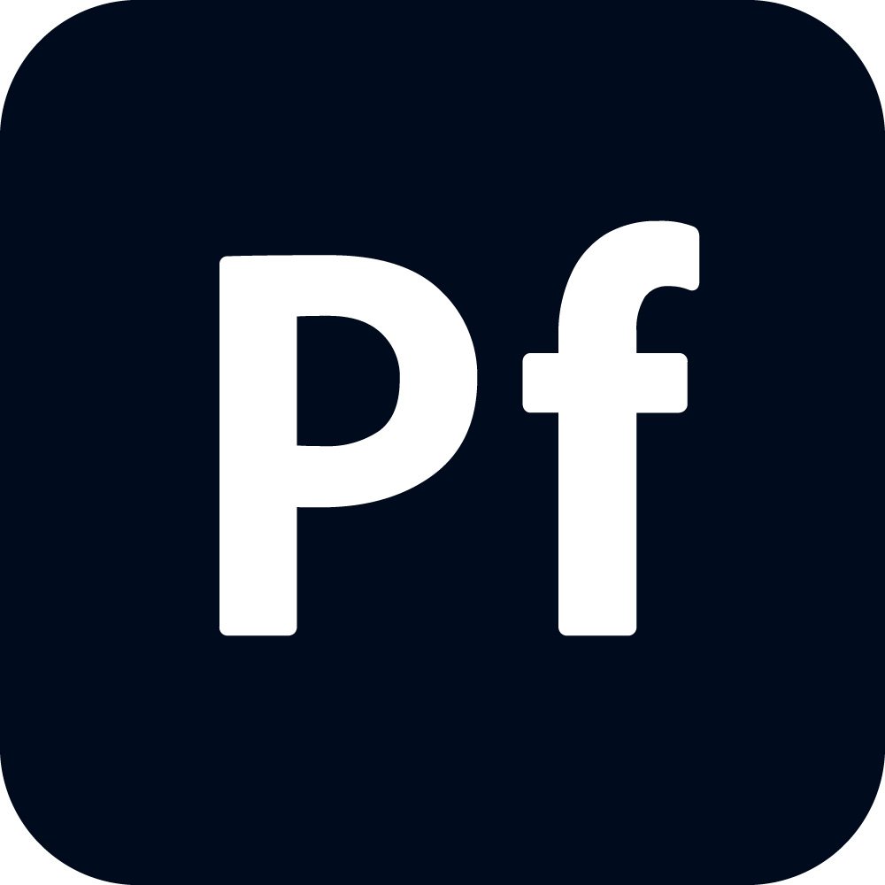 The logo also reflects Adobe Portfolio’s functional role within the Creative Cloud ecosystem. Portfolio allows users to sync selected projects directly from Behance or import media from Adobe applications like Photoshop, Illustrator, Lightroom, and XD, then assemble them into customizable web pages without needing to write code. The straightforward, compact logo communicates that same promise of simplicity and integration: it feels like an accessible entry point into a larger system of tools. When seen adjacent to other Adobe icons—such as Ps for Photoshop or Ai for Illustrator—the "Pf" mark conveys that Portfolio is an equal member of this suite, ready to help users present the work they’ve created in those other applications.