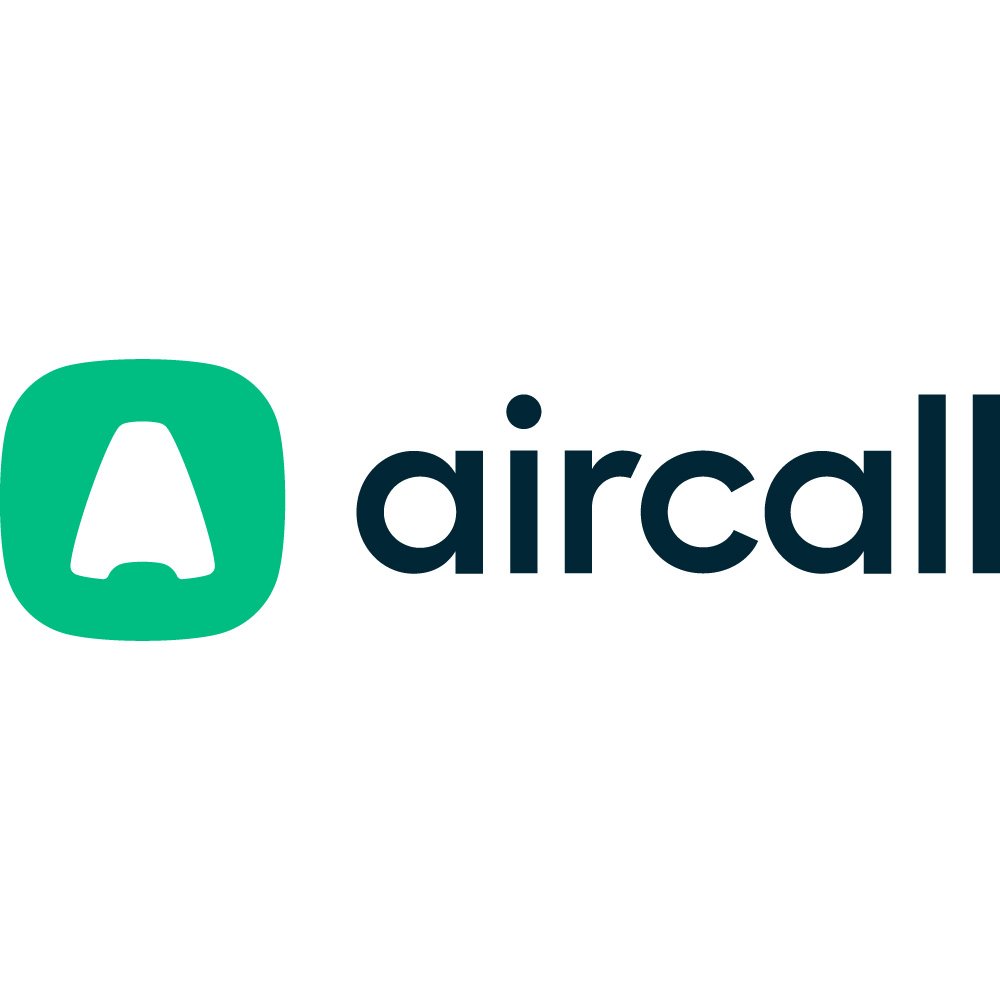 Next to the icon, the wordmark “aircall” appears in a dark, almost navy shade that contrasts strongly with the green emblem. The typography is lowercase, geometric, and sans serif, communicating a sense of modernity, accessibility, and digital-native confidence. The weight of the type is balanced—substantial enough to feel solid and trustworthy, but not so heavy that it loses the light, “air-like” character implied by the name. The spacing between letters is comfortable and open, reinforcing the idea of clarity in communication and well-organized conversations.