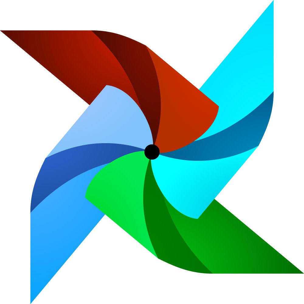 The Apache Airflow logo features a vivid, multicolored pinwheel-like symbol that instantly conveys motion, direction, and orchestration. Composed of four sweeping blades radiating from a central dark circle, the mark evokes the idea of controlled flow and continuous rotation. Each blade is rendered in a gradient of colors—red, blue, light blue, and green—creating a sense of dimensionality and dynamism. The sharp outer points and smooth inner curves together suggest both precision and flexibility, communicating that Airflow is built to manage complex processes with elegance and control. The logo’s clean vector construction also reinforces the project’s modern, cloud‑ready identity.