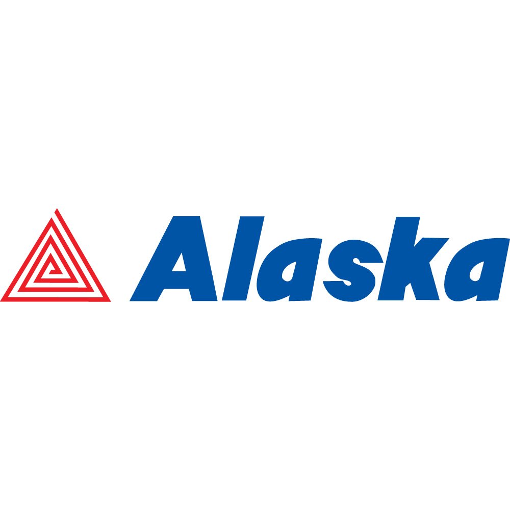 The blue Alaska wordmark, set in a thick, forward‑leaning italic style, communicates momentum and confidence. Blue is a color frequently associated with trust, professionalism, and technical competence; in this context, it also subtly reinforces the idea of coolness and temperature control that the name “Alaska” naturally conjures. The italic slant pushes the eye from left to right, mirroring progress and movement into the future. Rounded contours in the letterforms soften the otherwise robust appearance, suggesting that while the company operates in demanding technical or environmental conditions, it still prioritizes user comfort, safety, and ease of use. This careful typographic design makes the logo easily legible at a distance or in small formats, a crucial trait for packaging, equipment labeling, signage, and digital applications.