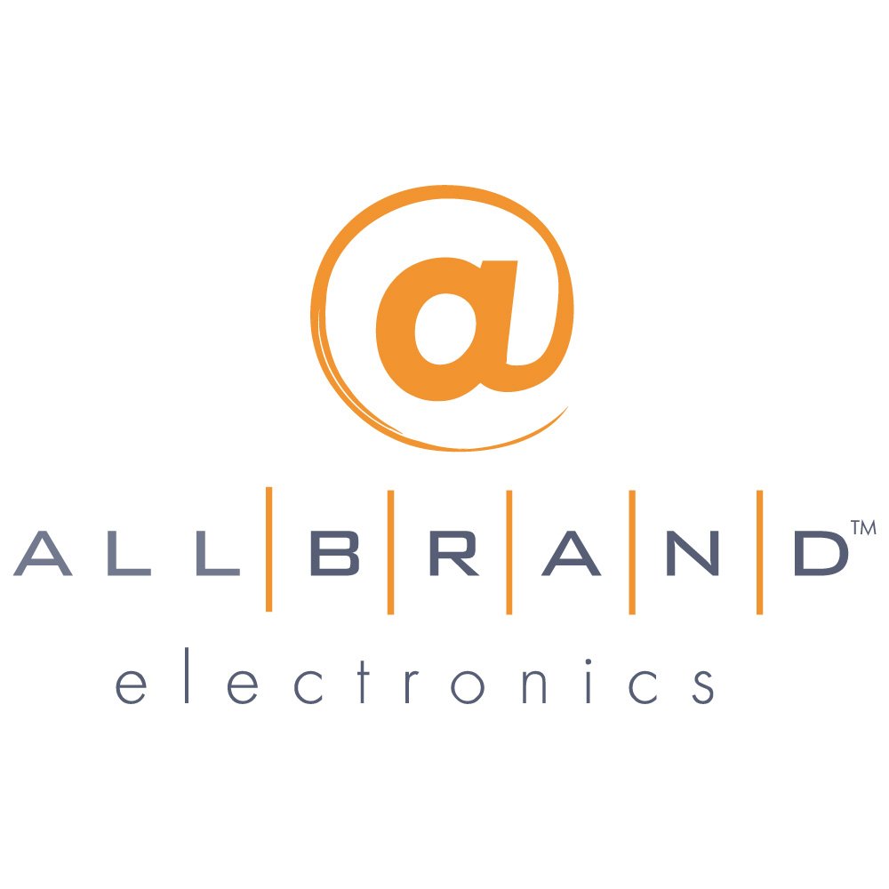 The All Brand Electronics logo presents a clean, contemporary visual identity that immediately communicates technology, connectivity, and reliability. Dominated by a bold orange "@" symbol enclosed within a circular stroke, the logo evokes the universal language of the digital age—email, internet, and online communication. This central icon sits above a refined wordmark, where the name "ALLBRAND" is spaced out in uppercase letters, separated rhythmically by slim vertical orange bars. Beneath it, the word "electronics" appears in a light, rounded lowercase typeface, giving the overall composition a sophisticated yet approachable tone. The combination of vivid orange and cool gray creates a balance between energy and professionalism, signaling a company that is both innovative and trustworthy.