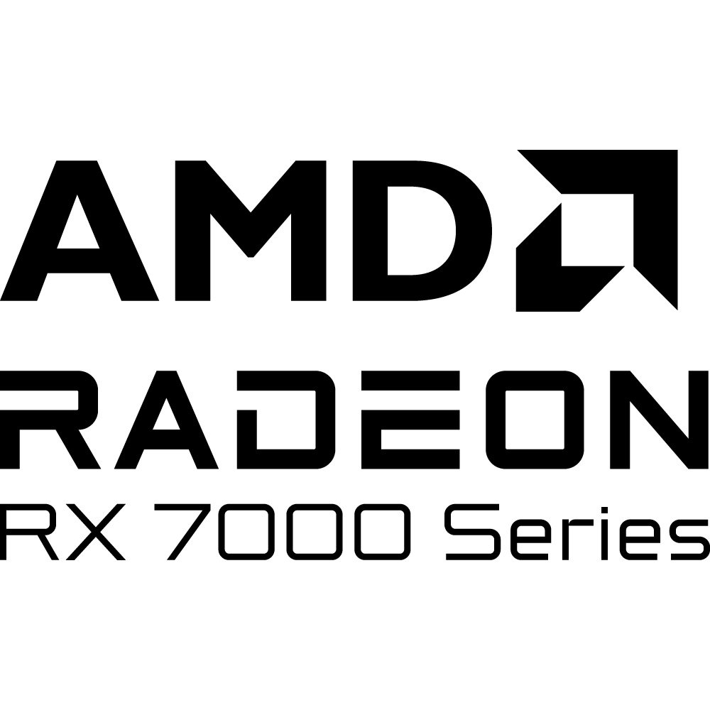 The AMD Radeon RX 7000 Series logo represents the high‑end family of graphics cards produced by Advanced Micro Devices, a leading global semiconductor company. The logo prominently features the bold "AMD" wordmark accompanied by the distinctive geometric arrow‑like symbol that has become synonymous with the brand. Beneath it, the word "RADEON" is displayed in strong, modern typography, followed by the precise and technical "RX 7000 Series" designation. The monochrome, vector‑friendly design emphasizes clarity, scalability, and a focus on performance, allowing the logo to be reproduced with sharp precision across print, packaging, user interfaces, and digital marketing. Its carefully weighted letterforms and clean lines convey engineering rigor and cutting‑edge innovation.