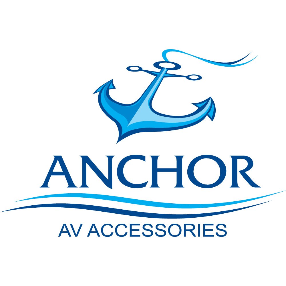 Beneath the anchor icon, the word “ANCHOR” is presented in a bold, serif-style typeface that balances tradition with a modern feel. The careful spacing and capitalization give the brand name a commanding presence, reinforcing the idea of strength and authority in the AV accessories space. The deep blue color palette used for the text echoes the tones of the anchor graphic, creating visual harmony and reinforcing the maritime theme. Blue, as a color, is strongly associated with trust, professionalism, and technological clarity, which aligns neatly with the brand’s positioning in a competitive electronics and accessories market.