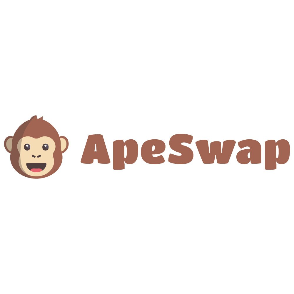 ApeSwap is a decentralized finance (DeFi) platform that operates primarily on blockchain networks and positions itself as a playful, jungle‑themed ecosystem for trading, yield farming, and other crypto‑native activities. Its logo prominently features a smiling cartoon ape head placed to the left of the stylized wordmark “ApeSwap.” The character is rendered in warm brown and beige tones, with rounded shapes and minimal detailing, giving it an approachable, friendly personality. This graphic direction contrasts with the often highly technical and abstract visual language found in other DeFi brands, making ApeSwap more accessible to newcomers who might otherwise find crypto intimidating. The overall impression is that of a community‑first platform that emphasizes fun, inclusiveness, and experimentation while still providing the core functionality users expect from a modern decentralized exchange.