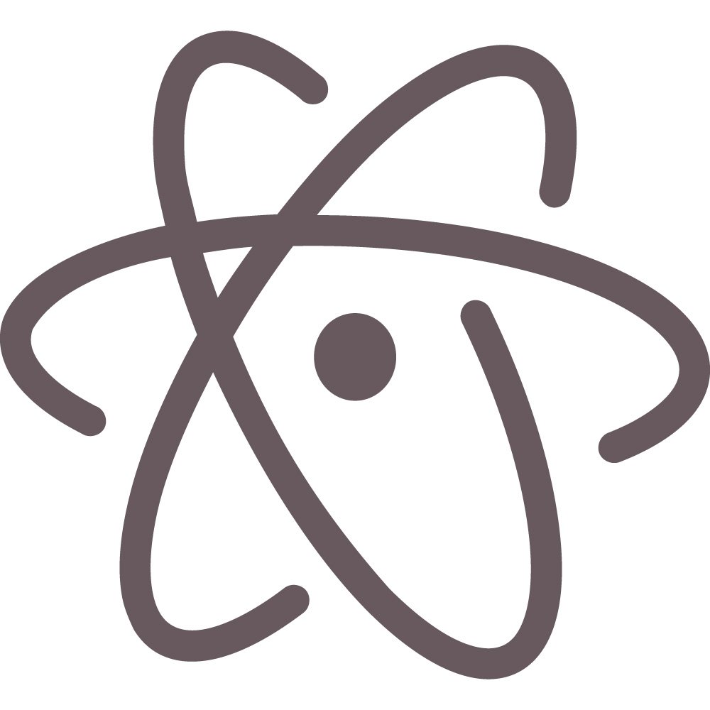The visual form of the logo is deliberately open and dynamic, with orbit lines that cross and loop in a way that implies motion and experimentation. Unlike rigid geometric or grid‑based wordmarks, this symbol suggests flexibility and fluidity, echoing how Atom lets developers reshape menus, keymaps, snippets, and workflows. The single dot at the center functions as both the atomic nucleus and a focal point, representing the coder or project around which tools and integrations revolve. This interplay of central focus and surrounding orbits resonates with the experience of using Atom as a hub for version control, collaboration, linting, and build processes while other services and plugins circle around it.