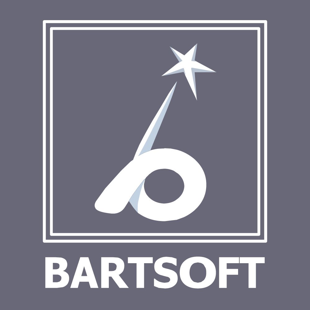 Typography plays a significant role in anchoring the brand’s identity. The wordmark "BARTSOFT" is set in bold, evenly spaced letters that balance the more fluid, illustrative symbol above. The strong horizontal base created by the text suggests solidity and trustworthiness, while the lack of serifs and decorative flourishes aligns the company with contemporary digital aesthetics rather than traditional or legacy industries. This combination of a imaginative symbol with straightforward, robust typography positions the brand as both creative and dependable—a partner capable of delivering imaginative software solutions grounded in sound engineering practices.