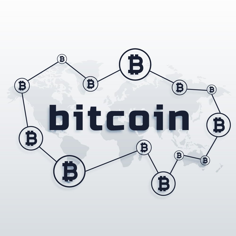 The Bitcoin logo presented in this image is a modern vector interpretation of the world’s first and most widely recognized cryptocurrency brand. At the center, the word “bitcoin” appears in a bold, geometric sans‑serif typeface, rendered in a dark bluish‑gray tone that conveys solidity, technology, and trust. Surrounding the text are multiple circular icons, each containing the stylized “B” symbol with vertical strokes that resemble currency lines, reinforcing Bitcoin’s function as money in digital form. These circles are connected by fine lines that visually suggest a network, all placed over a faint world map. This composition underscores the idea that Bitcoin is not bound by geographic borders but is instead a peer‑to‑peer system that operates across the globe.