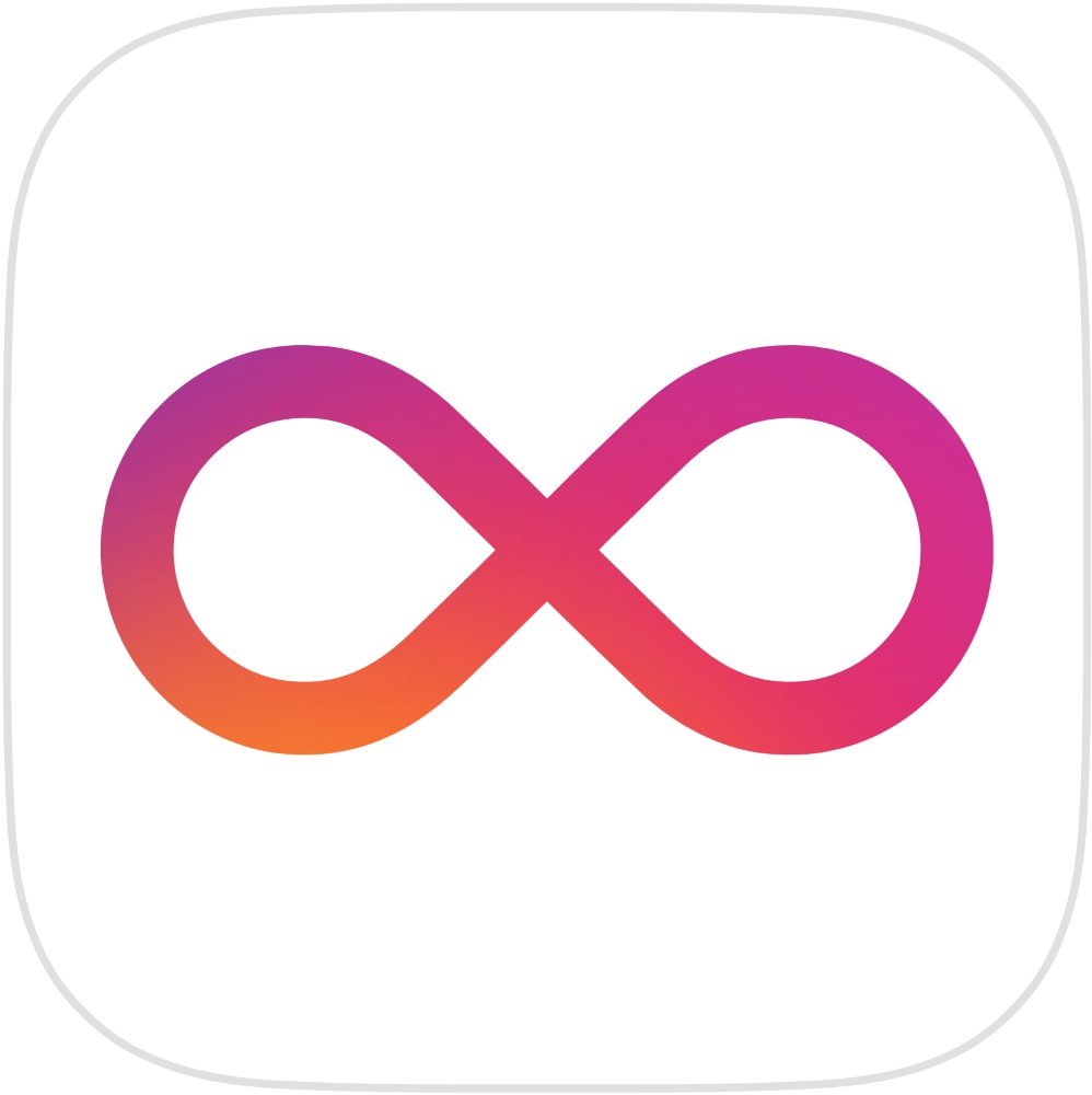 From a brand perspective, the Boomerang logo operates as a visual promise of fun, motion, and repeatable moments. Its infinite loop communicates durability and timelessness, hinting that memories captured with the app can be replayed as often as desired. The rounded square frame softens the overall impression and aligns the logo with the familiar silhouette of popular mobile apps, making it intuitive to recognize on crowded home screens. Together, the gradient colorway, continuous loop, and minimal framing create a cohesive visual identity that supports the app’s role as a lightweight, creative tool for making short, looping videos tailored for social sharing and everyday storytelling.