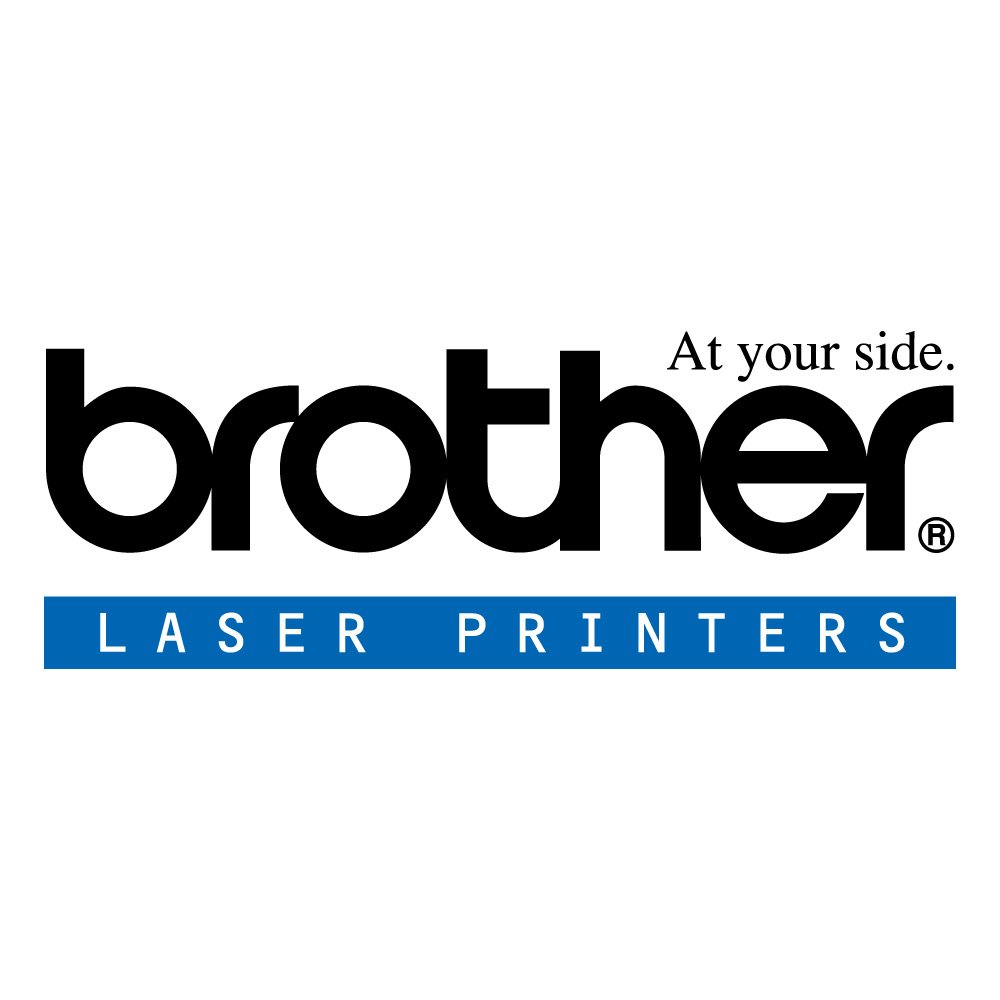 The Brother logo presented here is a clean and highly recognizable wordmark that communicates clarity, reliability, and modern technology. The central element is the bold, rounded lowercase "brother" set in a custom geometric sans-serif style. Its smooth, circular forms create a friendly, approachable impression, while the thickness of the strokes conveys strength and durability. Above the wordmark appears the succinct slogan "At your side." in a serif typeface, adding a human, service‑oriented tone that balances the technical feel of the main logo. Beneath the brand name, a blue rectangular bar holds the words "LASER PRINTERS" in white, spaced-out capitals, clearly identifying this specific product line while reinforcing the company’s focus on precision printing solutions.