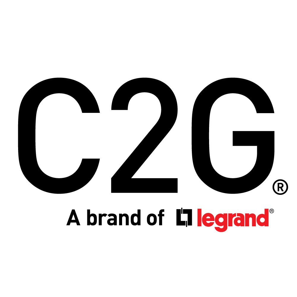 In terms of corporate narrative, C2G as a brand of Legrand positions itself in the broader market as a comprehensive provider of connectivity solutions. C2G’s product range typically includes HDMI, DisplayPort, USB, networking, audio, and power cables; adapters; extenders; splitters; and structured connectivity solutions designed for commercial AV, data centers, education, healthcare, corporate offices, and residential environments. The logo’s clarity and adaptability make it suitable for appearing on a wide range of hardware and packaging formats, from small connectors and cable jackets to racks, wall plates, and retail displays.