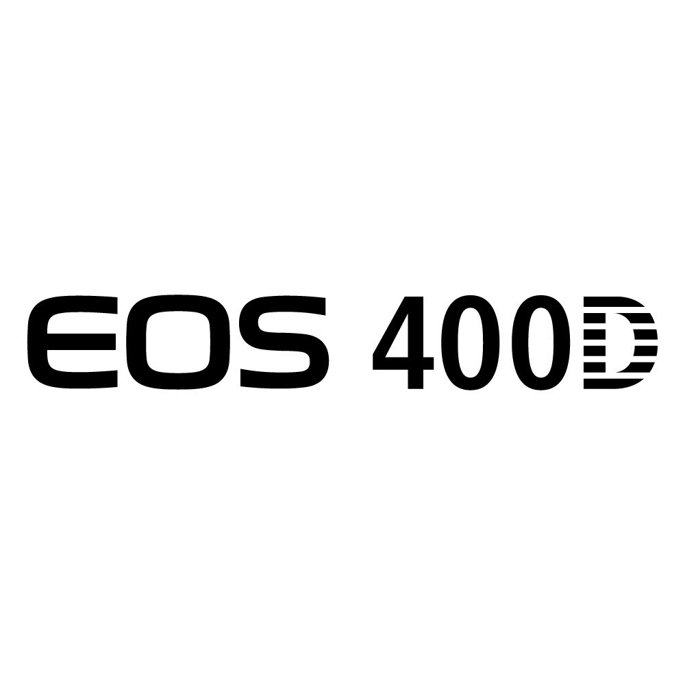 From a branding perspective, the EOS 400D logo is intentionally versatile. Its vector-based, purely typographic construction allows it to be scaled cleanly across camera bodies, packaging, manuals, advertising, and digital interfaces without loss of legibility. The choice of black as the primary color ensures strong contrast against a variety of backgrounds while also aligning with the dominant color of most camera bodies, creating a seamless integration when printed or embossed on hardware. This design economy reflects Canon’s understanding that a camera logo must be recognizable at a glance, even when viewed small on the front of a camera or quickly scanned in a catalog. Over time, the EOS 400D logo has come to symbolize not only a specific model but also a period in digital photography when high-quality DSLR performance became widely accessible, weaving the mark into the broader history of consumer and prosumer imaging technology.