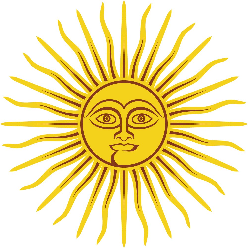 The logo shown in the image is a bold, stylized representation of the sun, rendered in warm shades of yellow and golden brown. At its core is a circular solar disc containing a human-like face, surrounded by a dynamic array of alternating straight and gently curving rays. This design follows a long visual tradition in which the sun is personified as a benevolent, watchful figure, symbolizing vitality, clarity, and renewal. The choice of bright yellow and gold instantly conveys warmth, optimism, and energy, while the clean vector style ensures that the logo can be reproduced with precision across both digital and print media.