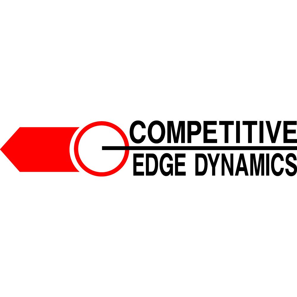 The CED Competitive Edge Dynamics logo is a strong, directional mark that visually communicates focus, speed, and technical precision. Dominated by a vivid red arrow pointing to the right, the logo immediately suggests motion, progress, and forward momentum. At the base of the arrow sits a circular target-like form, intersected by a horizontal line that continues seamlessly into the brand name. This integration of geometric shapes and typography gives the logo a clean, engineered look that fits well with a company dedicated to performance, timing, and accuracy in competitive environments. The limited color palette of red, black, and white further reinforces clarity and impact, making the mark highly recognizable at a glance.