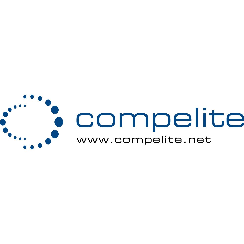 Color is employed with strategic intent. A dominant, deep electric blue conveys trust, stability, and technological sophistication, while a vibrant accent of circuit-board orange or luminous cyan is integrated into one facet of the symbol. This accent color represents the spark of innovation, actionable energy, and the compelling 'drive' within the elite structure. The typography is clean, confident, and modern, utilizing a sans-serif typeface with slight custom modifications—perhaps subtly sharpened terminals—to echo the precision of the symbol. The logotype is set in strong, lowercase or title case letters to feel both approachable and authoritative, with the 't' in 'Compelite' potentially aligning or interacting with the vertex of the symbol to create a unified lock-up.