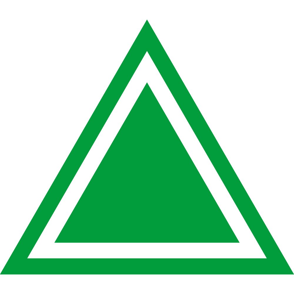 The Danish Technological Institute (DTI) logo presented here as a vector PNG is a strikingly minimalistic and geometric symbol built around a bold green triangle. The design features a large outer triangle with a strong green outline and a slightly smaller, solid green inner triangle, separated by a clean white band that mirrors the triangular contour. This layered triangular construction creates an impression of depth, direction, and structural clarity. The use of a single, vivid green color contrasted against a white background reinforces a modern, trustworthy, and environmentally conscious identity, echoing the Institute’s commitment to sustainable technological development and innovation.
