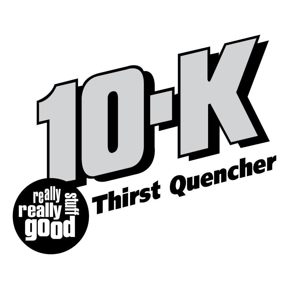 In terms of brand narrative, the 10-K Thirst Quencher identity can be interpreted as standing at the intersection of sport, lifestyle, and fun. The company behind this logo is likely focused on hydration beverages tailored to people who value both performance and taste. Its offerings might include isotonic or electrolyte drinks, flavored waters, or energy-boosting formulations crafted to support exercise recovery and daily hydration needs. By using a race-distance unit as the centerpiece of its name, the company signals commitment to measurable performance while also hinting at goals, training plans, and personal milestones. The logo thus becomes more than a visual mark; it embodies a story about setting a distance, pushing through, and finishing strong with the right fuel.