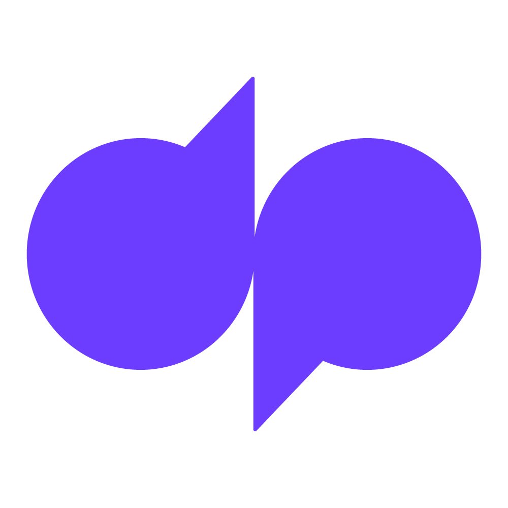 The Dialpad logo displayed here is a minimal yet expressive symbol that embodies the company’s identity as a modern cloud communications platform. The mark consists of two bold, rounded shapes in a vivid purple color. Each shape resembles a stylized speech bubble, and together they create a mirrored composition that suggests a continuous, two‑way conversation. The left form is a circle with a sharp, upward‑pointing triangular cut, while the right form mirrors this with a downward‑pointing triangular tip. Aligned vertically in the center, these shapes form an abstract monogram and a clear metaphor for dialogue: two participants, one exchange, one connected space.