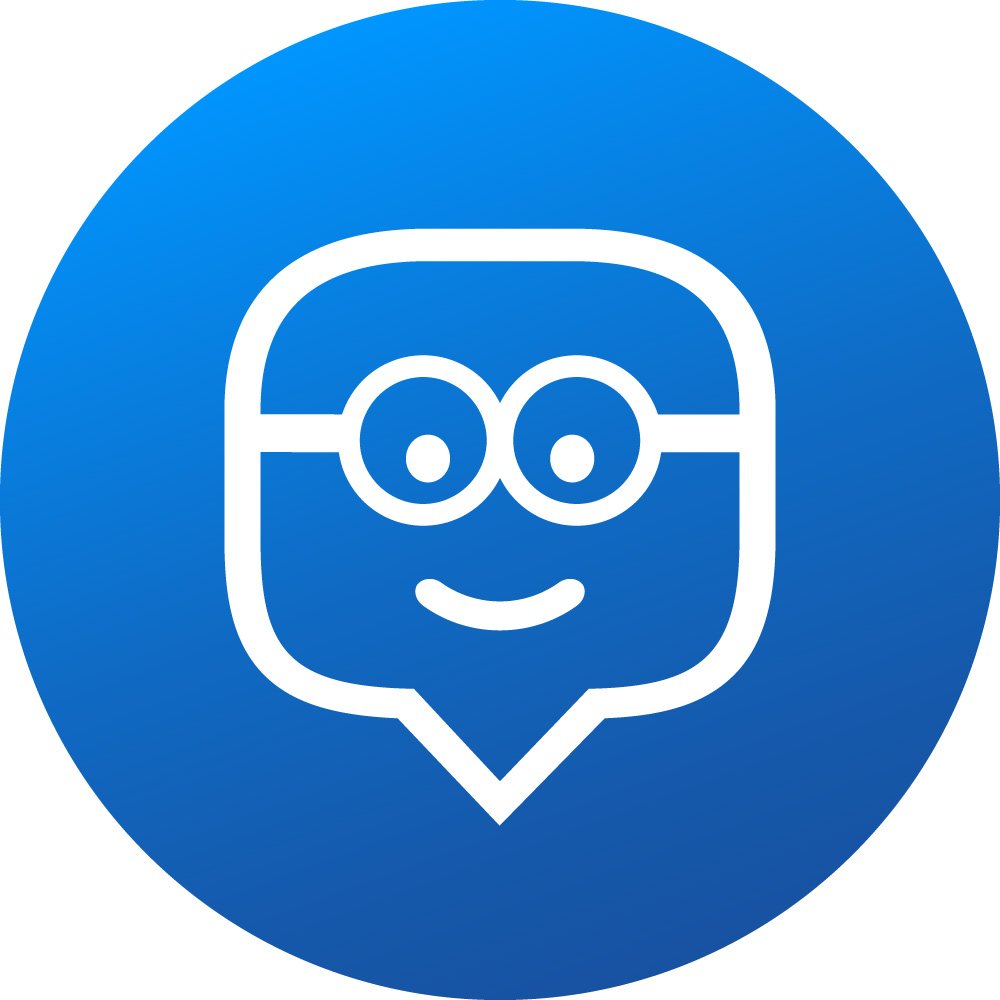 The color scheme, dominated by gradients of blue, is significant. Blue has long been associated with trust, intelligence, communication, and calmness. By employing a rich blue circle as the background, the logo conveys reliability and professionalism while remaining approachable. The white line art of the character and speech bubble contrasts clearly with the blue field, ensuring strong visibility on screens and printed materials. This color contrast also contributes to accessibility, making the logo legible at small sizes and on a wide variety of devices, a critical consideration for a digital‑first learning brand.