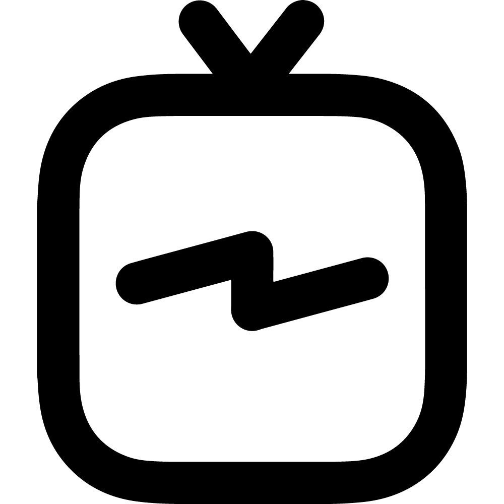 The IGTV logo represents Instagram’s dedicated platform for long‑form, mobile‑first video content. Visually, the symbol is a simplified television set drawn with a single, thick, rounded line that forms a vertical rectangle with fully curved corners. At the top, two short diagonal strokes emerge like compact antennae, immediately evoking the familiar silhouette of a classic TV set. Inside the rounded screen area appears a dynamic, zig‑like horizontal stroke, reminiscent of a waveform or a stylized playback bar. Rendered in a bold, solid monochrome, the mark is instantly recognizable even at very small sizes and in a wide range of contexts, from app icons and navigation tabs to marketing materials and motion graphics.