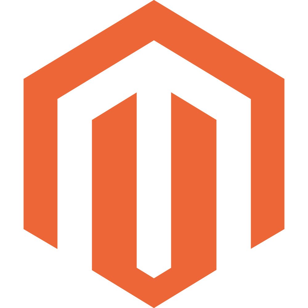 In terms of cultural and industry perception, the Magento brand is closely associated with professional e‑commerce implementation. The logo is often seen alongside technical documentation, developer conferences, community events, certifications, and partner programs. Its presence signals a focus on performance optimization, secure transaction processing, multi‑store and multi‑language capabilities, and advanced merchandising features. This technical and commercial positioning is reinforced by the clean, no‑nonsense geometry of the mark: there are no decorative flourishes, only functional shapes that mirror the practical mindset of developers and merchants working behind the scenes of digital stores.