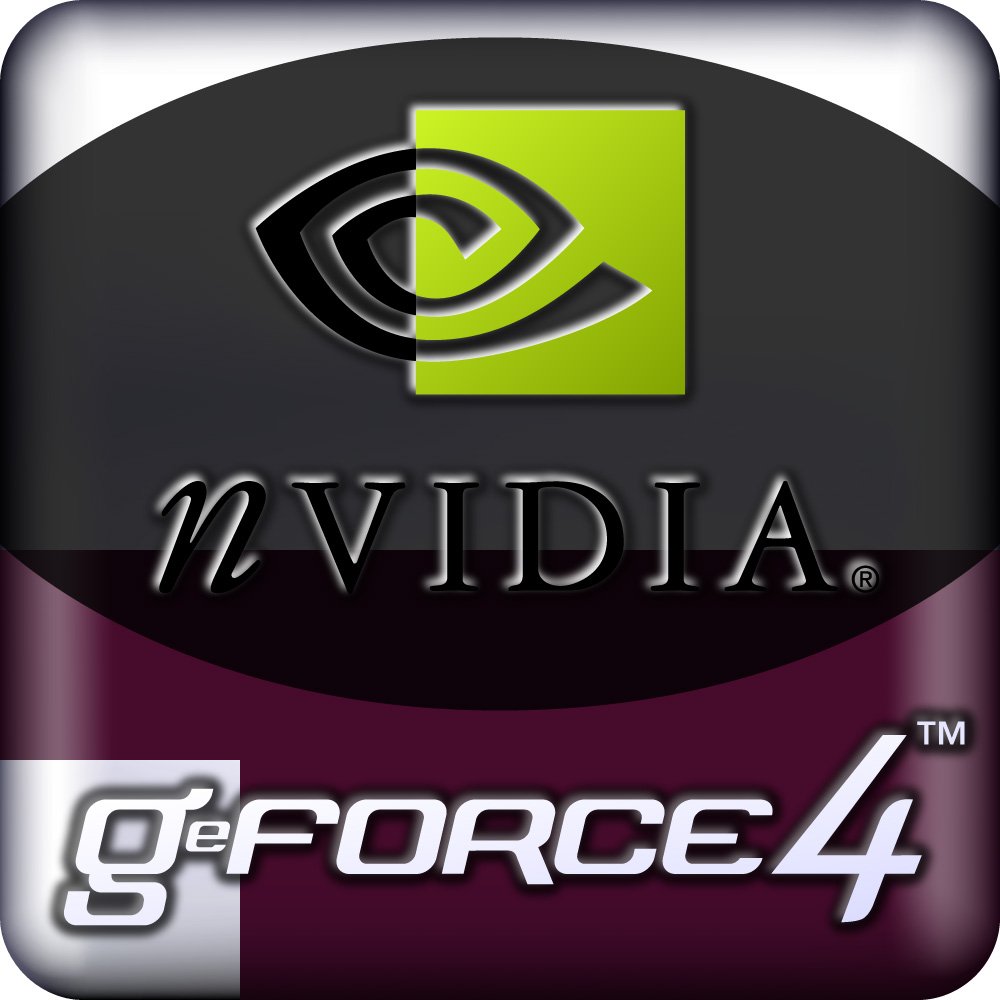The color palette is deliberately stark and impactful. The luminous green—officially 'Nvidia Green'—is more than a color; it is a brand signature representing innovation, performance, and digital life. It evokes the glow of a CRT monitor in a dark room, the circuit traces on a motherboard, and the otherworldly light of a sci-game interface. The extensive use of metallic silver, chrome, and black grounds this energy in a sense of tangible, high-quality hardware. The prevalent use of 3D bevels, sharp gradients, and subtle drop shadows in the logo's rendering speaks directly to the era's design trends, mirroring the very graphical effects—like real-time lighting and detailed textures—that the GeForce4 GPU was capable of producing. The logo itself looked like a rendered 3D object, a meta-representation of its own power.